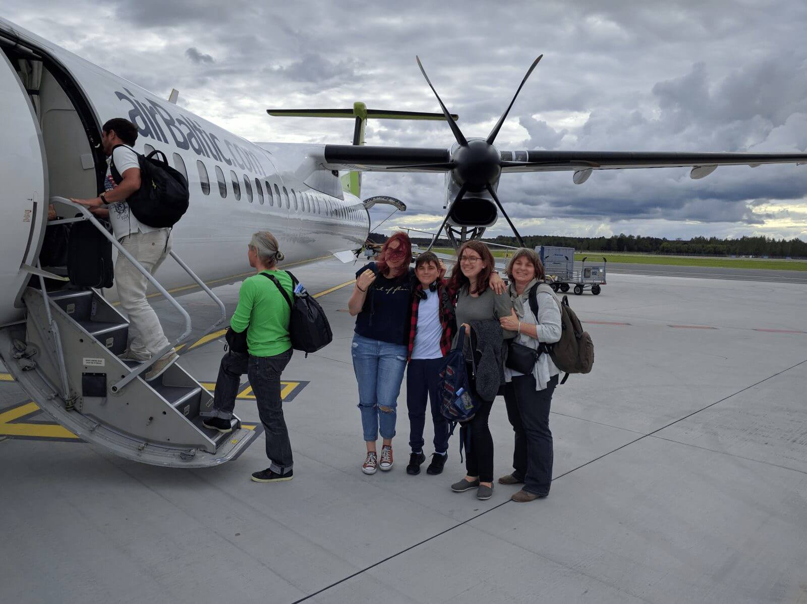 Alles verläuft wie am Schnürchen, weder Stau, noch Verspätungen trüben die Vorfreude auf die Ferien. In Riga steigen wir um in eine Propellermaschine. Ui, der Start ist ziemlich rumplig, dafür erleben wir einen wunderschönen Flug übers Meer in den Sonnenuntergang.
