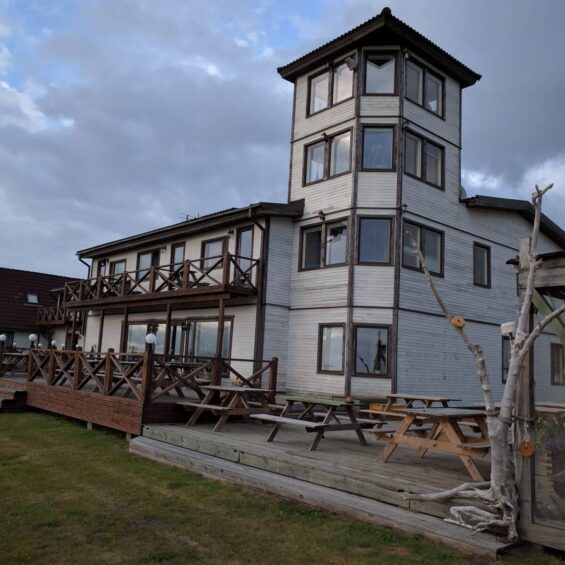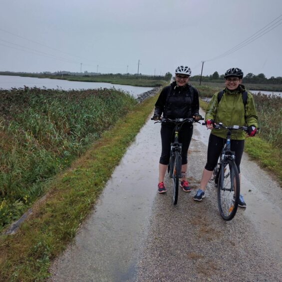 Da es auf dem Festland immer heftiger anfängt zu regnen, ziehen wir nun unsere Regenjacken diesmal rechtzeitig an. Der freundliche, junge Mann, der unser Gepäck zur nächsten Unterkunft bringt, hat einen kleinen Lieferwagen dabei, sodass Samuel und Brigitte auch noch ihre Velos einladen und mitfahren dürfen. Marco und die Mädels nehmen tapfer die letzten 34 km unter die Räder.