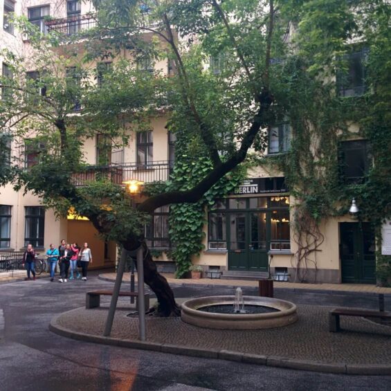 auf dem Nachhauseweg machen wir noch einen kleinen Abstecher über die Hackeschen Höfe, ein Gebäudekomlex mit Wohnungen, Geschäften und Restaurants. Durch kleine Torbogen geht man in verschiedene Innenhöfe, in der Hoffnung, irgendeinmal den Ausgang wieder zu finden. Diese Anlage ist so einmalig in ihrer Art, dass wir beschliessen, sie bei Tag noch einmal zu besuchen.
