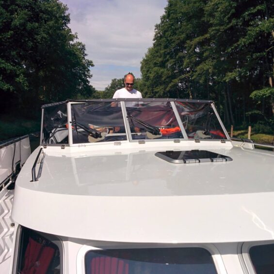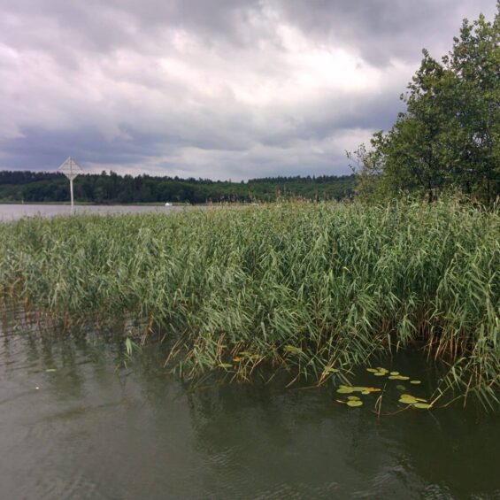 Unterwegs gibt es dann viel zu tun: Frühstücken, Fischen (Samuel ist wiederum äusserst erfolgreich!), Verdeck „abtakeln“, damit wir mit der 3,80 m hohen Anette für den Ernstfall der 3,50 m tiefen Brücke gewappnet sind). Ausserdem probieren wir an einem idyllischen Schilfufer das erste Mal unseren Anker aus. Das Schifflein stellt sich brav in den Wind, und wir geniessen die Ruhe und ein erfrischendes Bad.