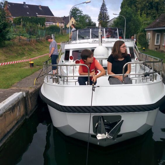 Um die langen Wartezeiten bei den Schleusen zu vermeiden, startet unser Skipper den Motor heute bereits um acht Uhr. In die erste Schleuse bei Canow können wir tatsächlich sofort einfahren.
