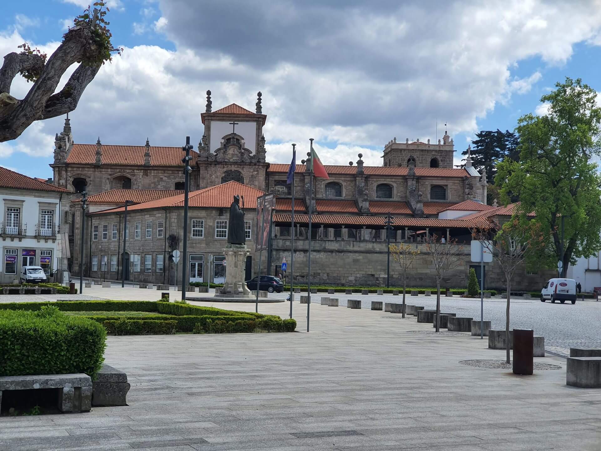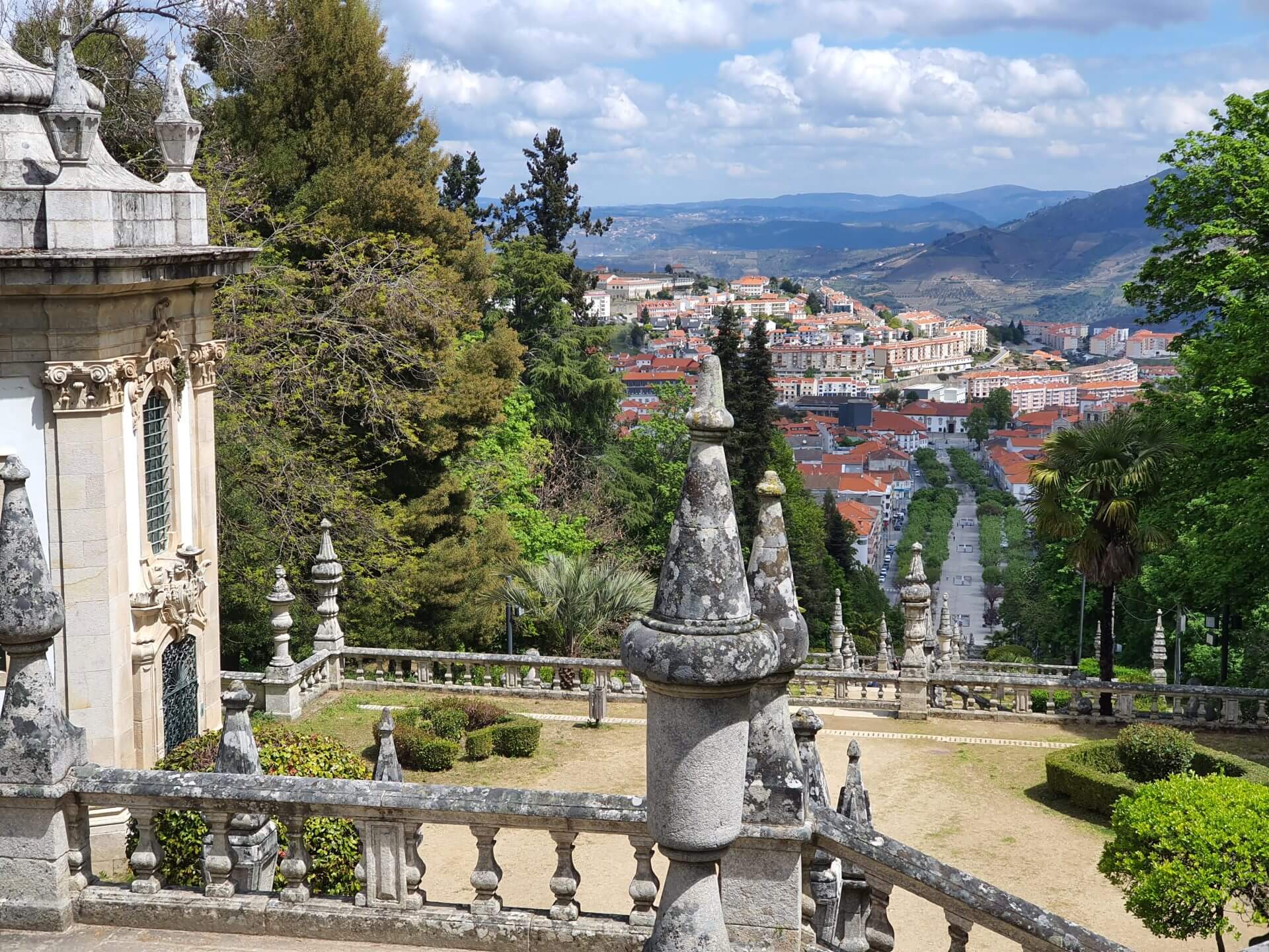 Heute erkunden wir die Region in Richtung Lamego. Vor dem eindrücklichen Kloster von Salzedas stehen wir dann leider vor verschlossenen Türen – so schade! Dafür entdecken wir auf dem nahegelegenen Hügel den Friedhof und eine kleine Kapelle. Es ist total friedlich und wir geniessen die herrliche Aussicht auf die Hügel mit Weinreben. Danach geht es weiter zum nächsten Highlight, dass uns unsere Vermieterin angegeben hat: Die Brücke von Ucanha. Hier ist die ganze Umgebung äusserst modern und gepflegt neu angelegt worden. Es gibt ein Kanalsystem (wohl zur Bewässerung) und und ein grosszügiges Picknickareal mit kleinen Kanälen und Brücklein. Ob hier wohl im Sommer Familienfeste gefeiert werden? Wir sehen ein paar Angler die, wie so oft die alten Männer, im Café sitzen und Palavern. In Lamego erfahren wir dann auf dem Touristoffice, warum heute alles geschlossen ist, wo doch sogar am Ostersonntag gearbeitet und gemäht wurde: 25. April ist der Jahrestag des sogenannten Nelkenrevolution von 1974, deshalb ist Feiertag.