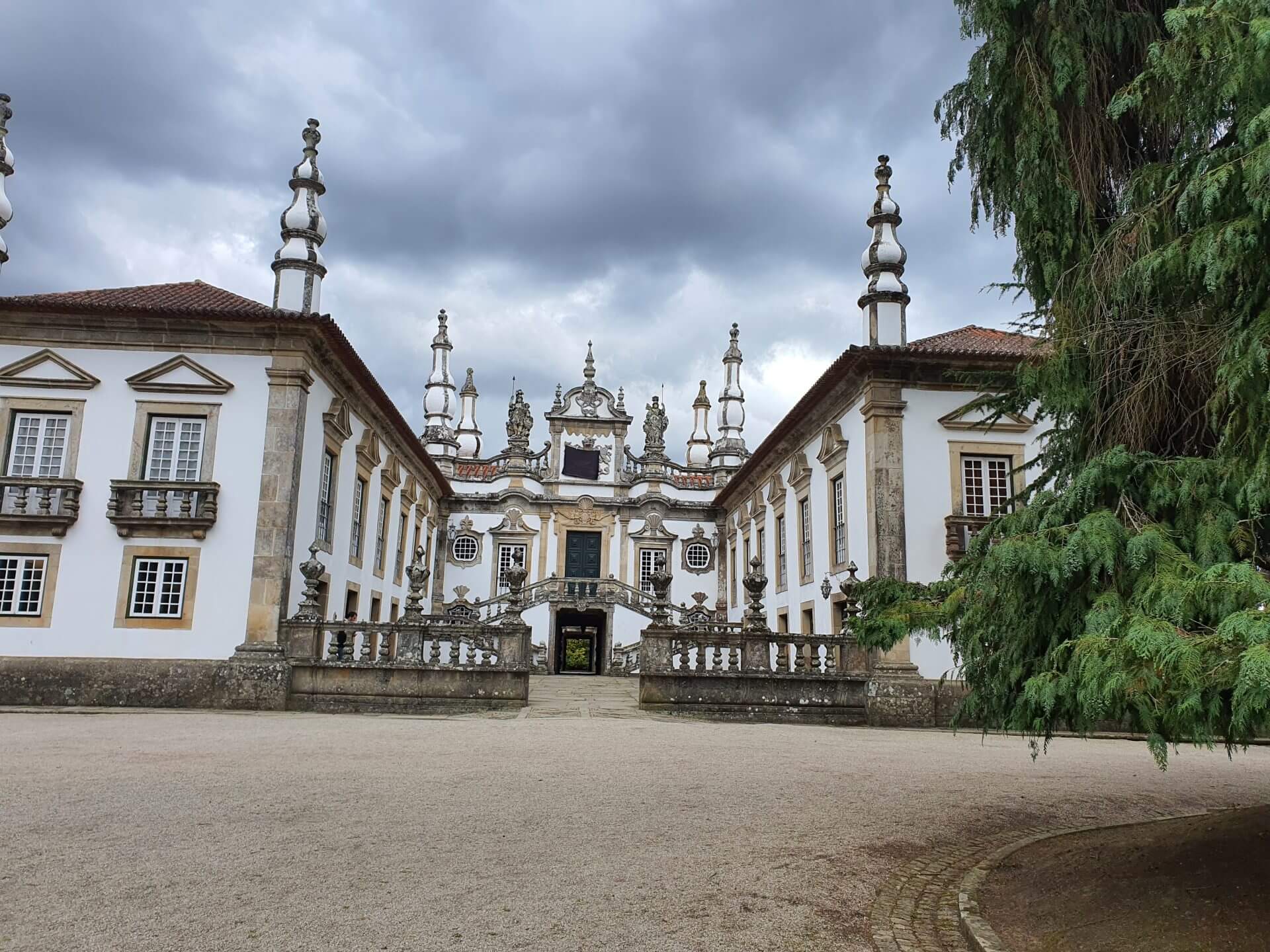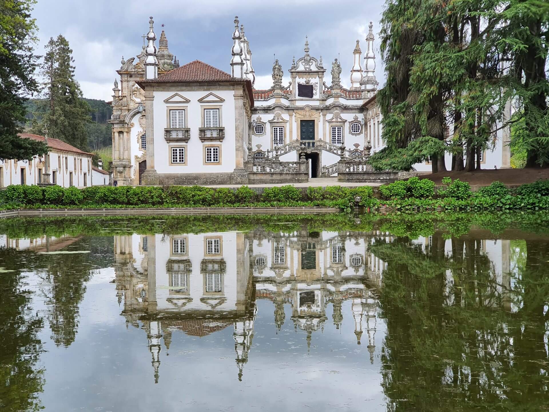 Pinhao verlassen wir heute wieder und fahren Richtung Guimaraes (mittlerweile können wir es sogar fast portugiesisch aussprechen: „Gimaraisch“). In der Nähe von Vila Real lassen wir uns vom Mateus Palast und dem wunderschönen Garten vezaubern. Besucherinnen hat es ausser einer Kinder(garten)gruppe nicht viele, dafür ist umso mehr Personal im Garten am Werk, das die Buchsbumhecken in zum Teil skurrile Formen schneidet.
