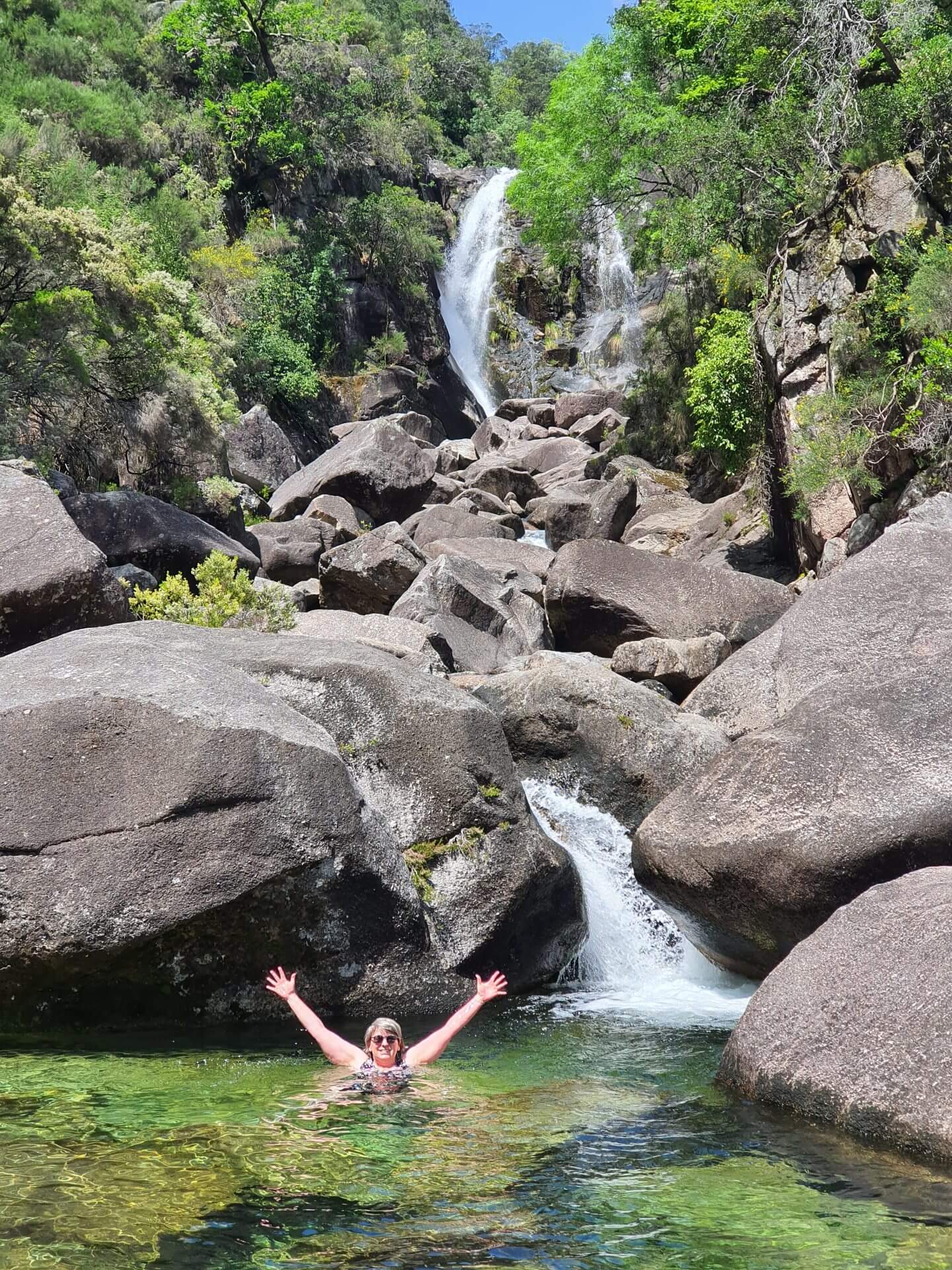 Das Badebecken des Wasserfalls erschien sehr kalt, als ich die Füsse hineinstreckte. Aber es sah so paradiesisch aus, dass ich es einfach nicht lassen konnte :-). Als ich dann drin war (was auf den glitschigen Steinen sehr schnell ging), war es einfach herrlich!