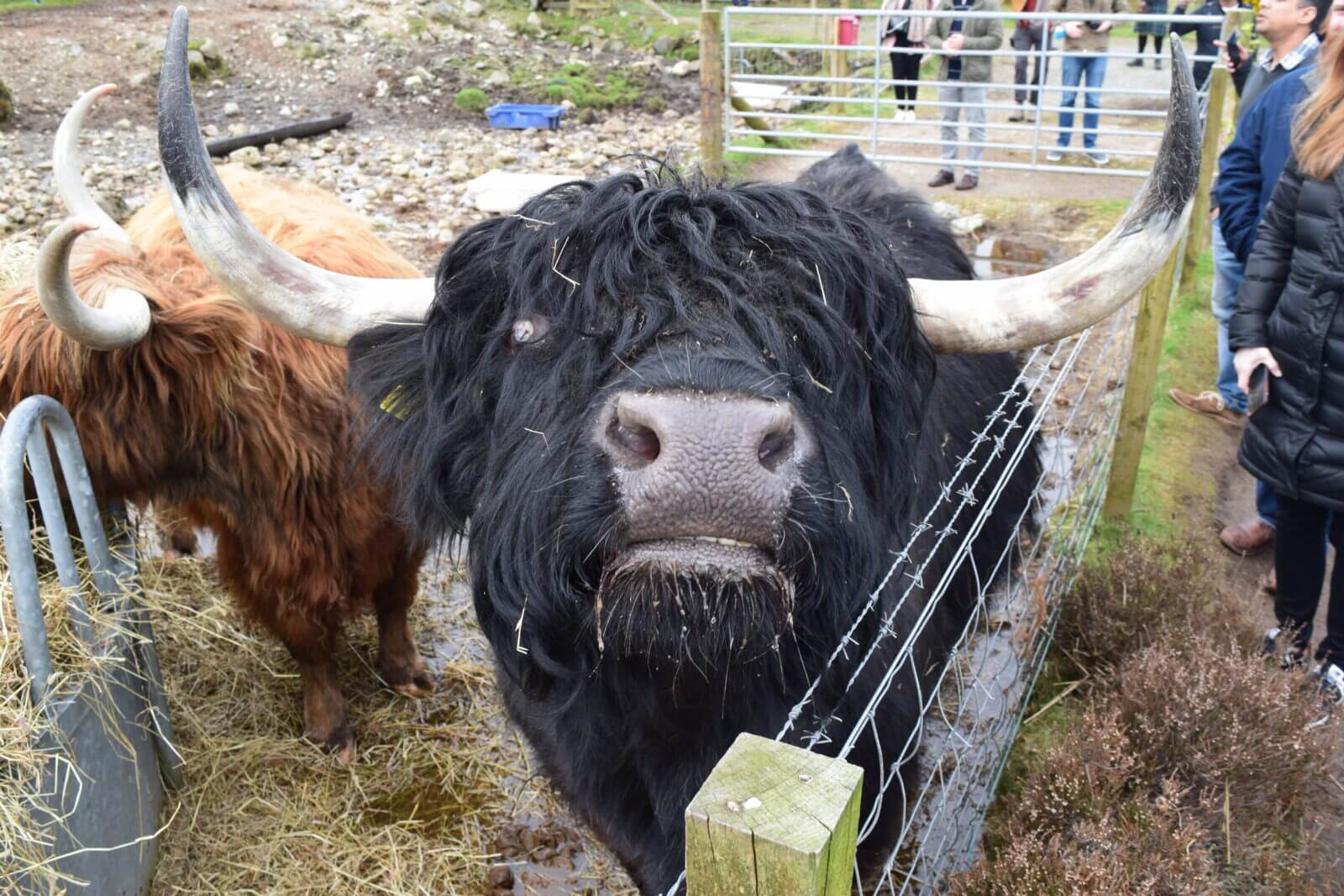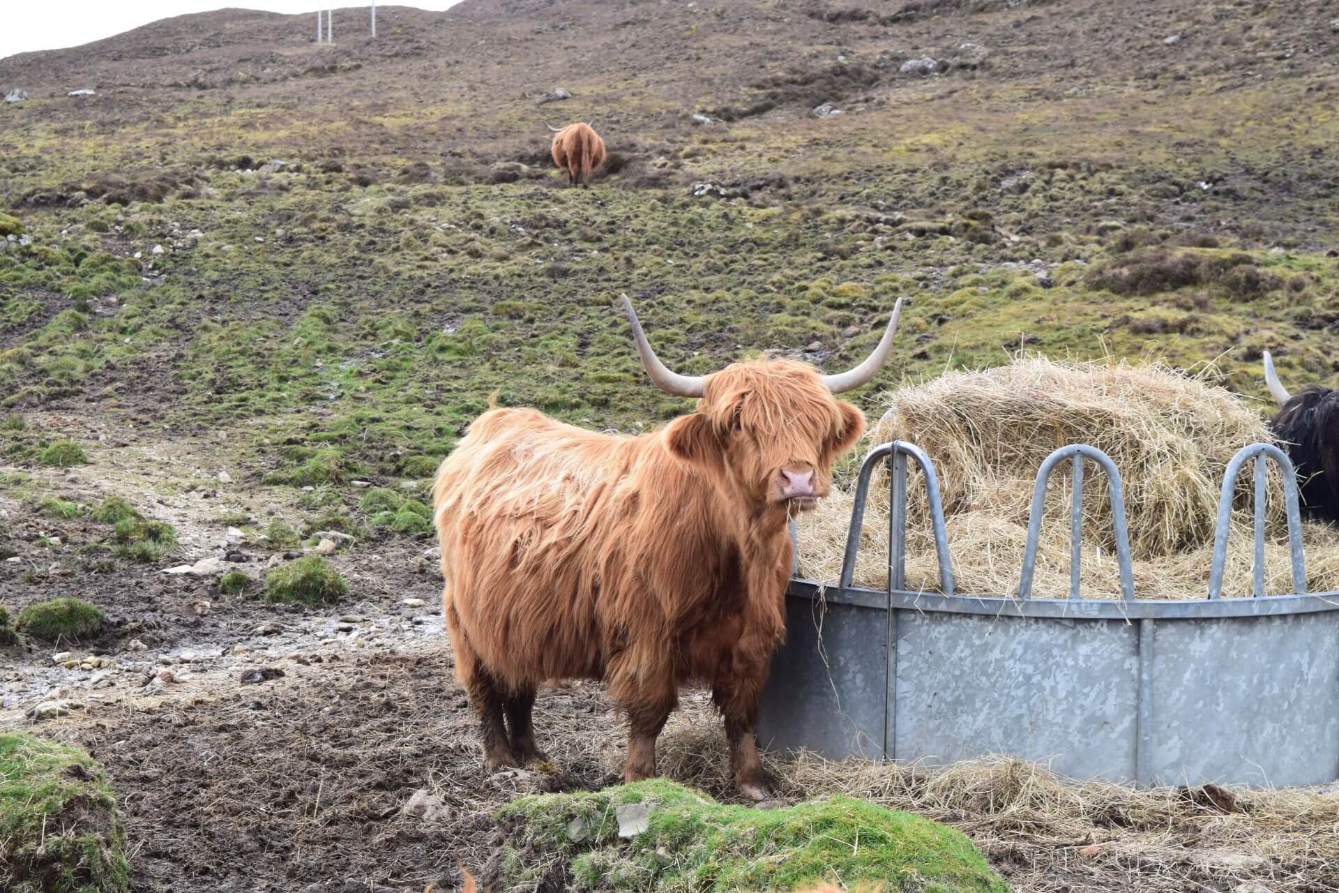 Die Strassen auf der Insel sind meistens einspurig. Ausserdem sind sie sehr kurvig, hüglig und unübersichtlich. Dazu kommen noch die Tiere (Kühe und Schafe), die frei auf der Insel herum laufen. Alles in allem war ich extrem froh, dass ich nicht selber Autofahren musste. Ich konnte aber eine Highland Kuh streicheln, die am Strassenrand war.